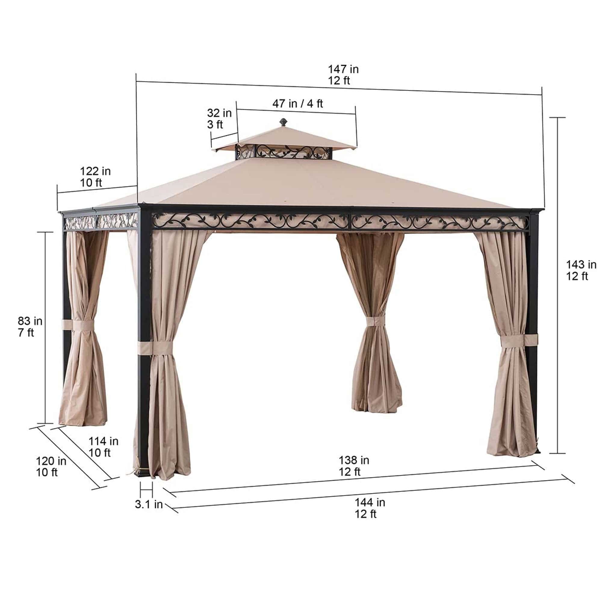 Expand your living space by moving the indoors outside to create an end-of-the-day oasis that the perfect spot for entertaining family and friends. This 10x12 ft. patio gazebo by the world leading ready-to-assemble outdoor structure maker, SUNJOY, creates the perfect outdoor setting. The decorative metal vine pattern is sure to add visual interest to any backyard setting. Enjoy a covered spot under the weather-resistant canopy supported by the powder-coated steel frame. The 2-tier roof provides comfortable airflow while the curtains and mosquito netting offer additional shade, protection, and privacy. With straightforward, easy-to-follow assembly instructions you’ll be relaxing with your beverage of choice in your favorite new outdoor living space for years to come.