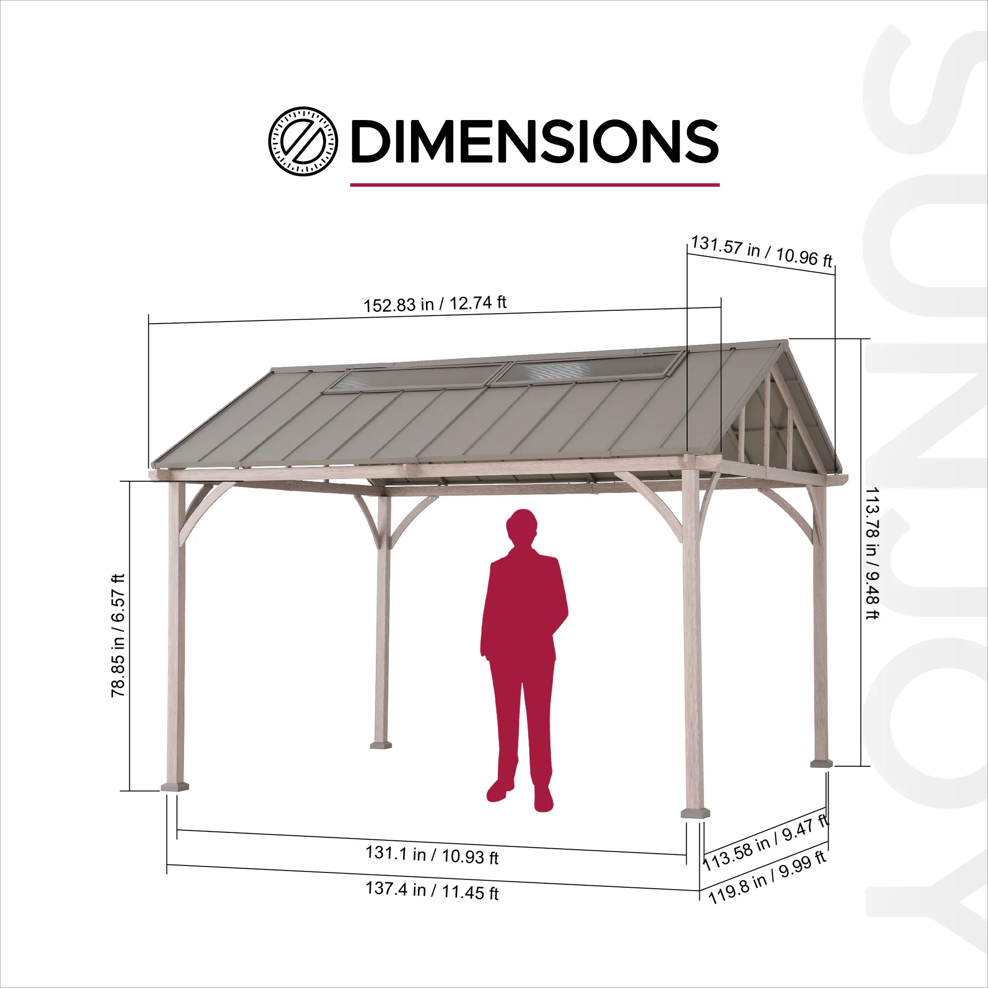 SUNJOY 11x13 Wood Finish Hardtop Gazebo with Galvanized Steel Roof and PC Boards