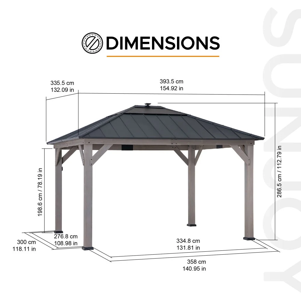 SUNJOY 11x13 Wooden Gazebo with Solar Panel, LED Lights and Ceiling Hook - Driftwood Cedar