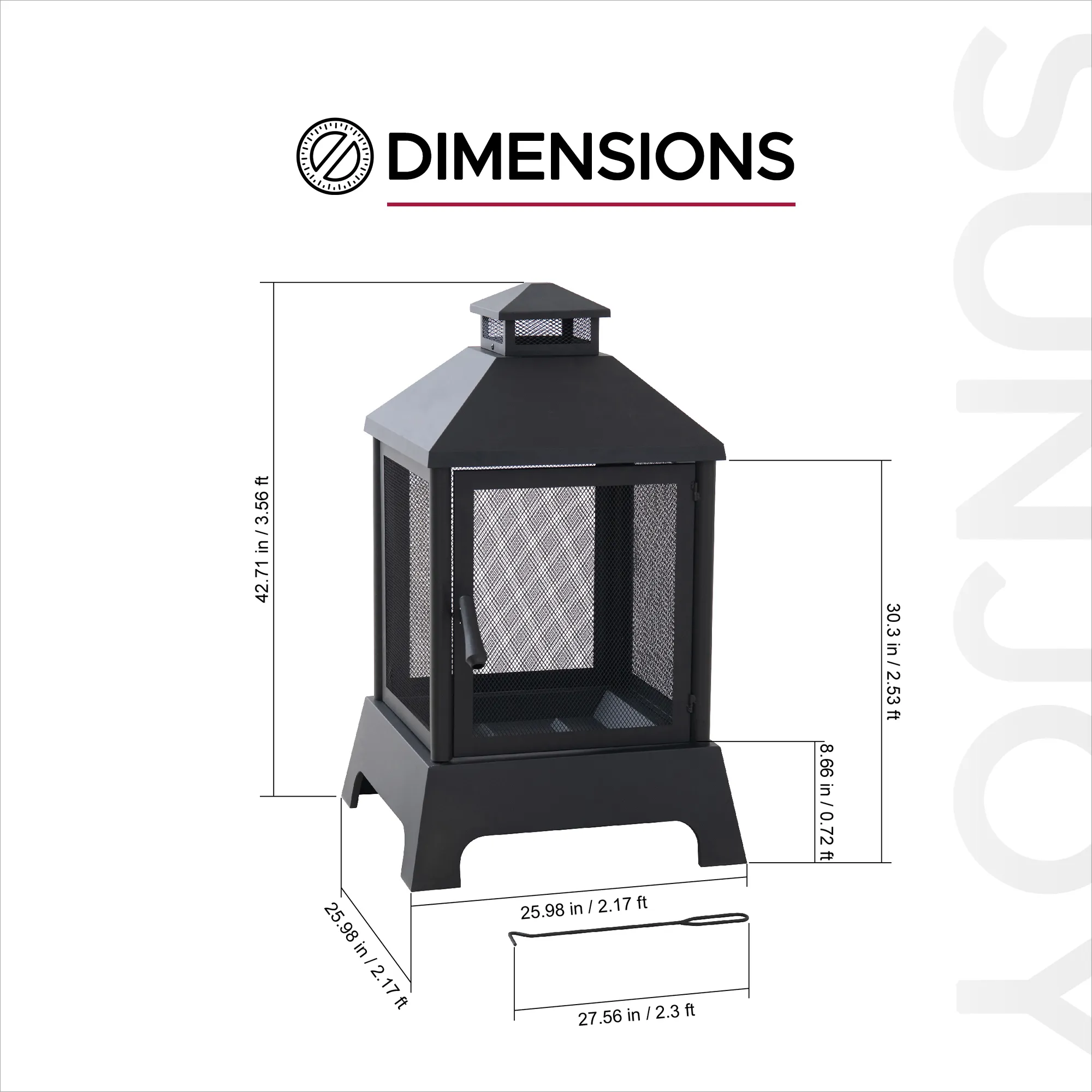 - Large 42.7" Outdoor Fireplace for Cozy Evenings: This tall wood-burning fireplace (25.98" x 25.98" x 42.72") offers a generous heating space, ideal for patios, gardens, and backyard gatherings.